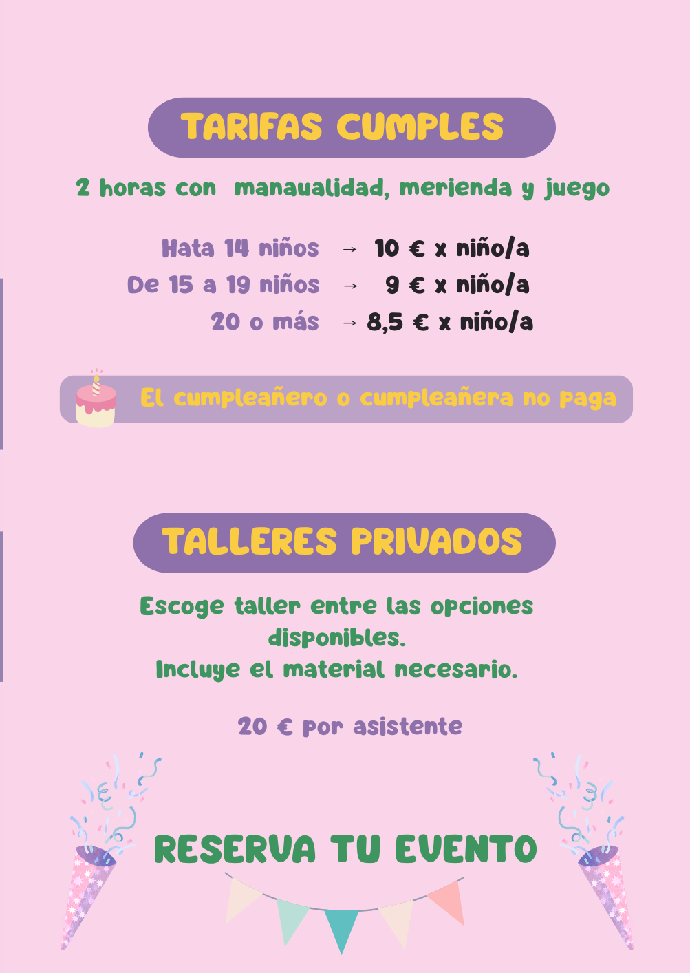 Diseñamos talleres personalizados para grupos, cumpleaños o eventos tanto con niños como con adultos, convirtiendo cada ocasión en una experiencia única.